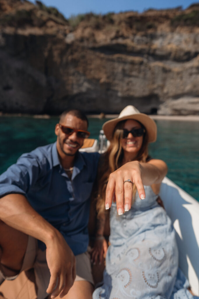 Una proposta intima al tramonto, sul mare, dove le onde sussurrano promesse di eternità.